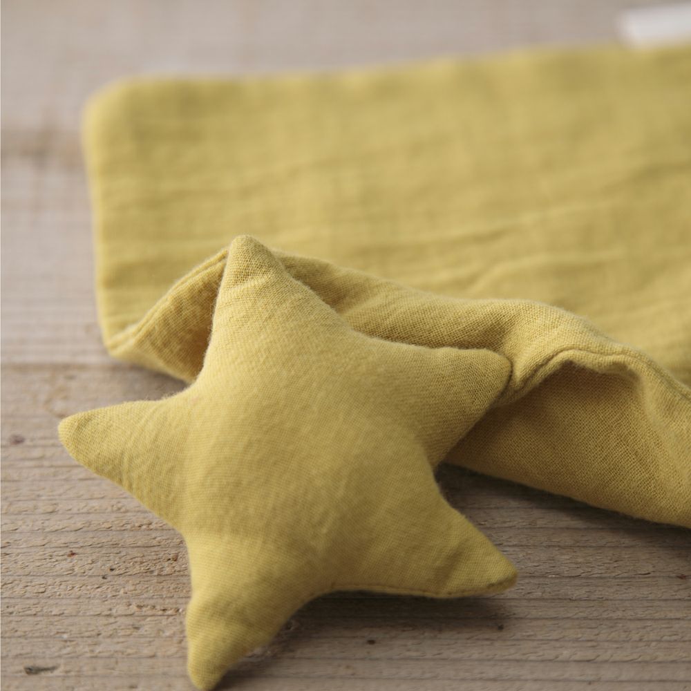 ふわふわ感とやさしい肌触りのコットンガーゼを使用したガラガラスターハンカチ。