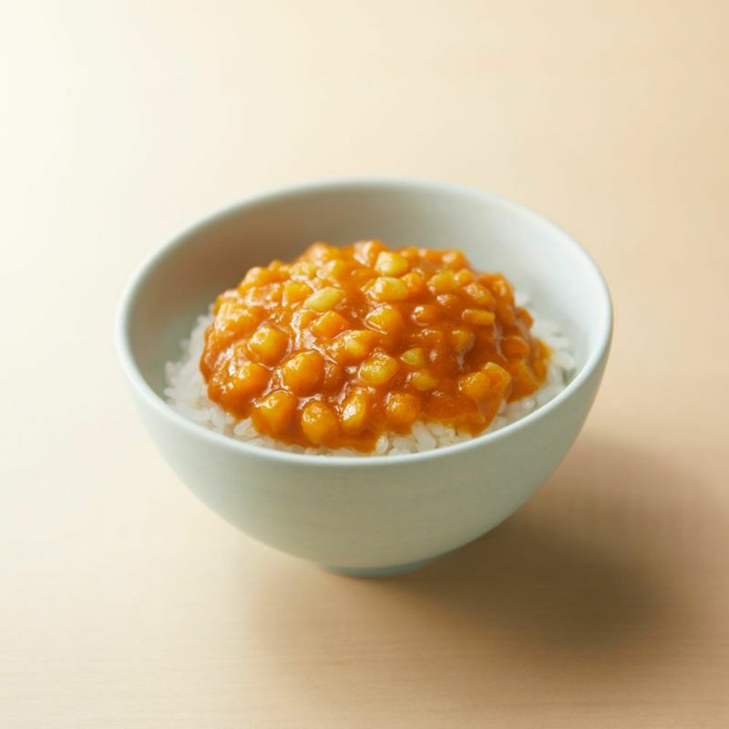 野菜(じゃがいも、にんじん)、とうもろこしペースト(国内製造)、トマトピューレー、かぼちゃペースト、炒めたまねぎ、にんじんペースト、なたね油、砂糖、カレー粉、食塩