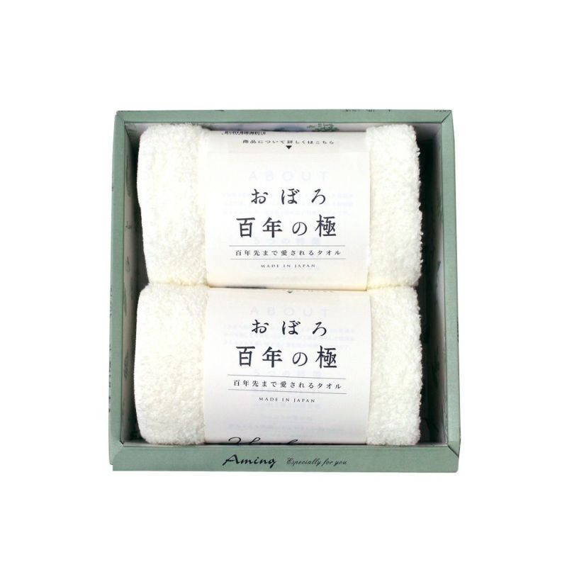 おぼろタオル おぼろ百年の極 フェイスタオル[アミングオリジナルカラー] 2枚組セット【ギフトボックス入り】/Amingオリジナルセット