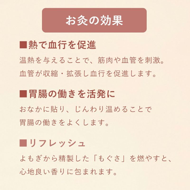 お好みに合わせて3段階で温度の切り替えが可能。温灸部を体にしっかり固定できる粘着シールが付いているので、狙った場所にご使用いただけます。気分によって無香とよもぎの香りの使い分けができる2タイプをセット。15分の自動オフタイマーで消し忘れなくご使用できます。