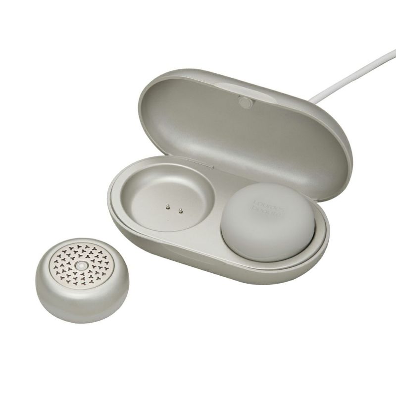充電ケースにケーブルを挿し、本体を置くだけのカンタン充電。充電ケースはコンパクトサイズで、どこにでも持ち運べます。