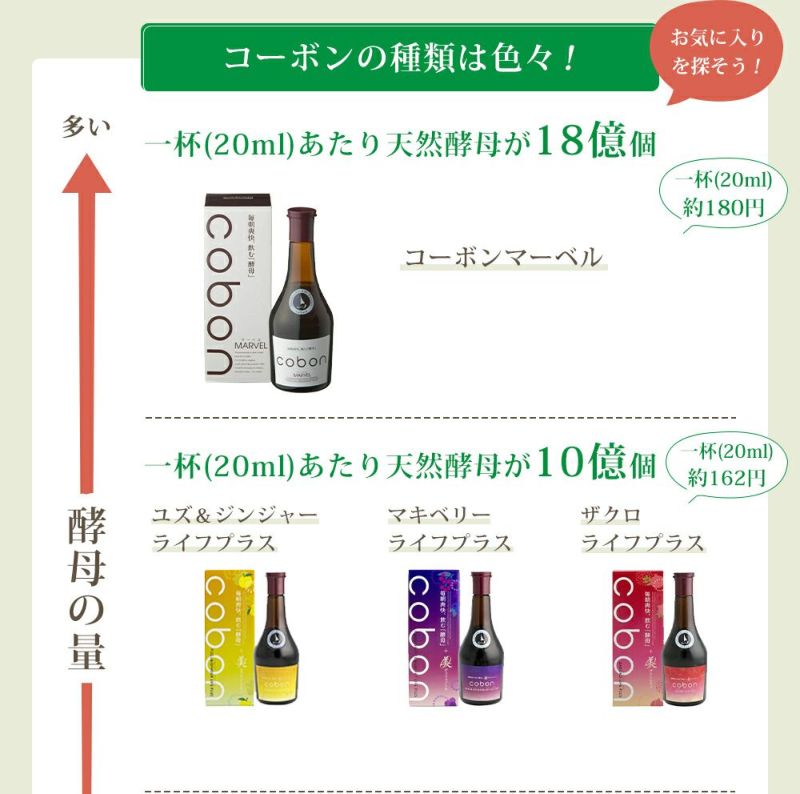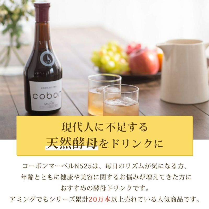 コーボンマーベルNは、「酵素」を作り出す微生物「酵母」をたっぷり含む植物エキス発酵飲料です。1杯(約20mL)で18億の酵母を含んでいます。毎日のリズムが気になる方、年齢とともに健康や美容に関するお悩みが増えてきた方にもおすすめです。約1ヶ月タイプ。