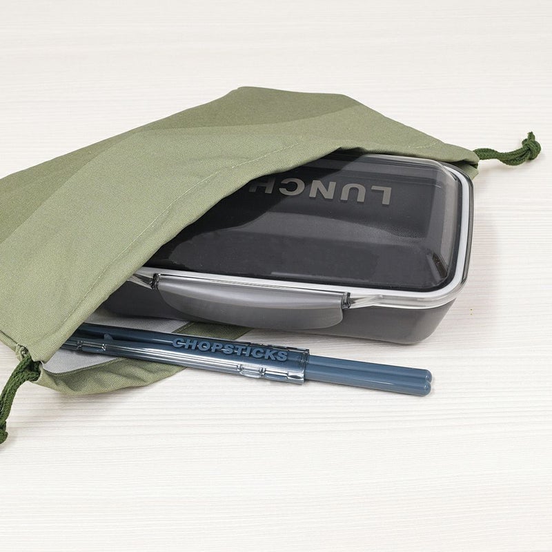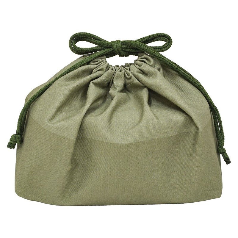 幅広のお弁当箱にも対応できる、シンプルなバイカラーの保冷ランチ巾着。