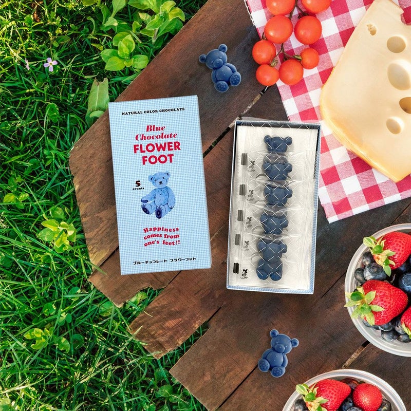 口どけの良いミルク感のあるホワイトチョコレートに青いバタフライピーパウダーを混ぜて着色しています。