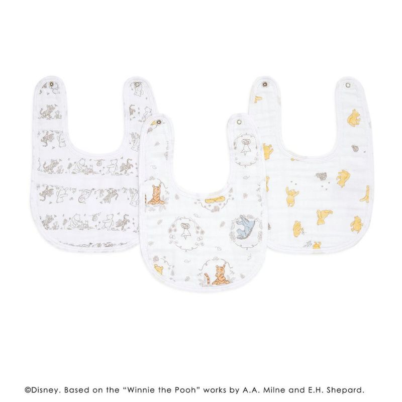 NY発、モスリンコットン製のおくるみブランド aden+anais essentials(エイデンアンドアネイ エッセンシャルズ)【日本正規品】モスリンコットン ビブ3枚セット ディズニー ウィニーアンドフレンズ disney baby -winnie+friends- 3pk snap bibs