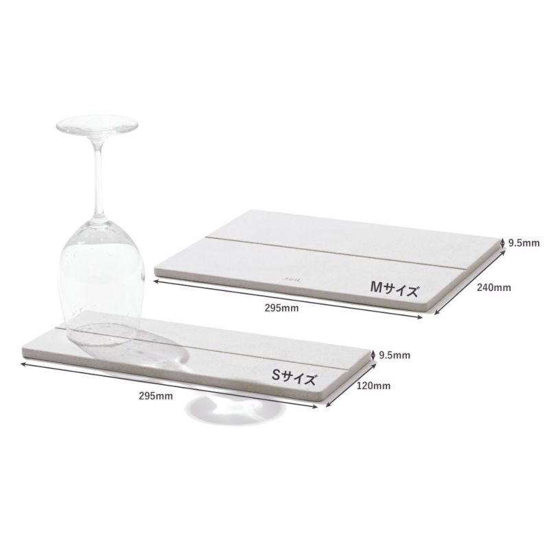 吸水性の高い自然素材「珪藻土」をベースに、「ひる石」と紙を加えた水切りトレー。独自の素材配合で、吸水性がグッとアップ!洗い立ての食器類についた水も、サッとすばやく吸いとります。