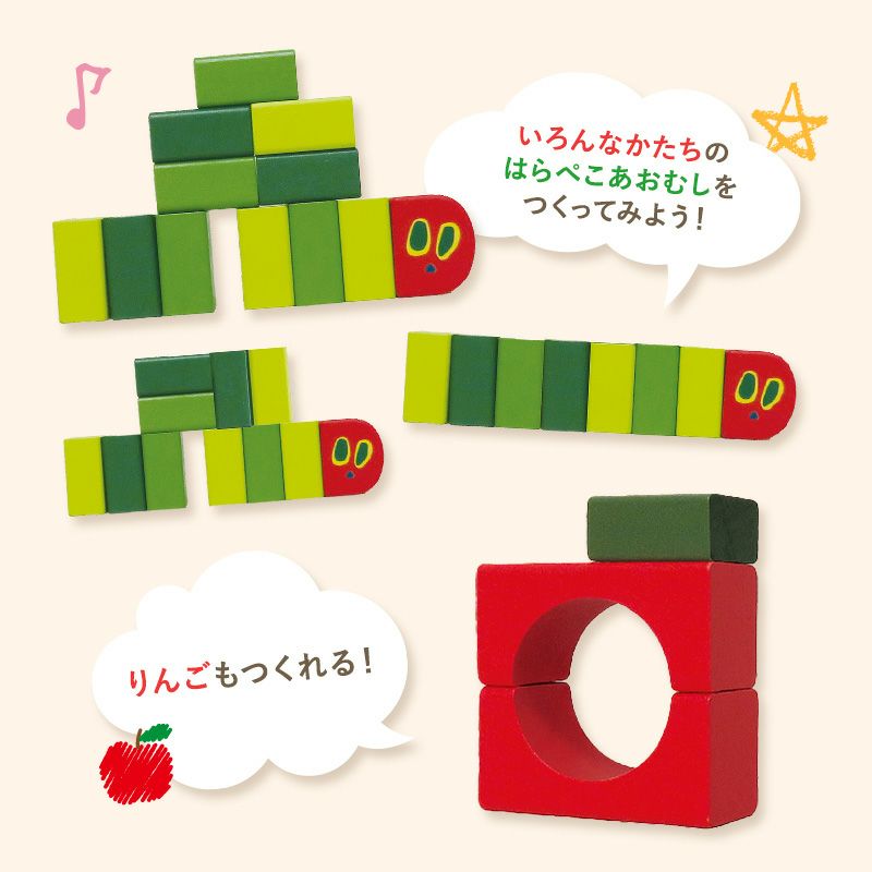 大人気絵本「はらぺこあおむし」が見た目もかわいい木製つみきになって登場です!