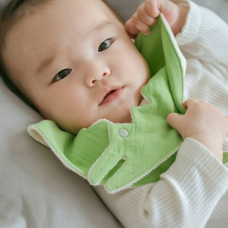 スタイは見た目の可愛さはもちろん、赤ちゃんの肌にやさしい綿100%のガーゼ素材を使用しており、裏面には吸水性に富んだパイル生地を採用。