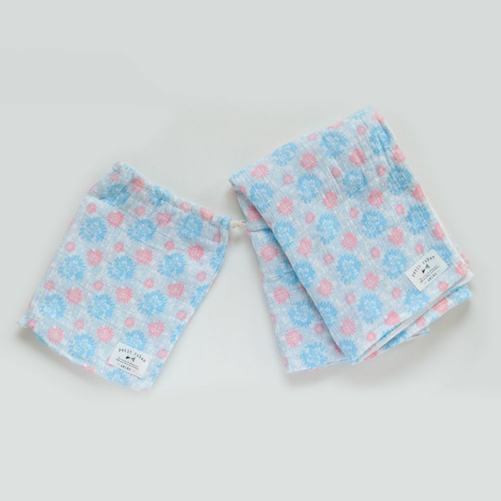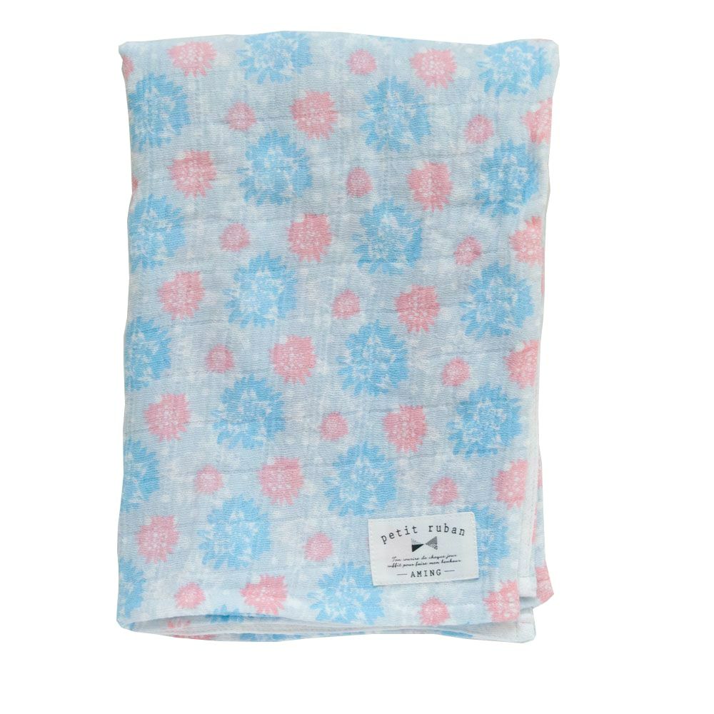 petit ruban(プチルバン)モスリンおくるみ フラワー柄(ブルー)