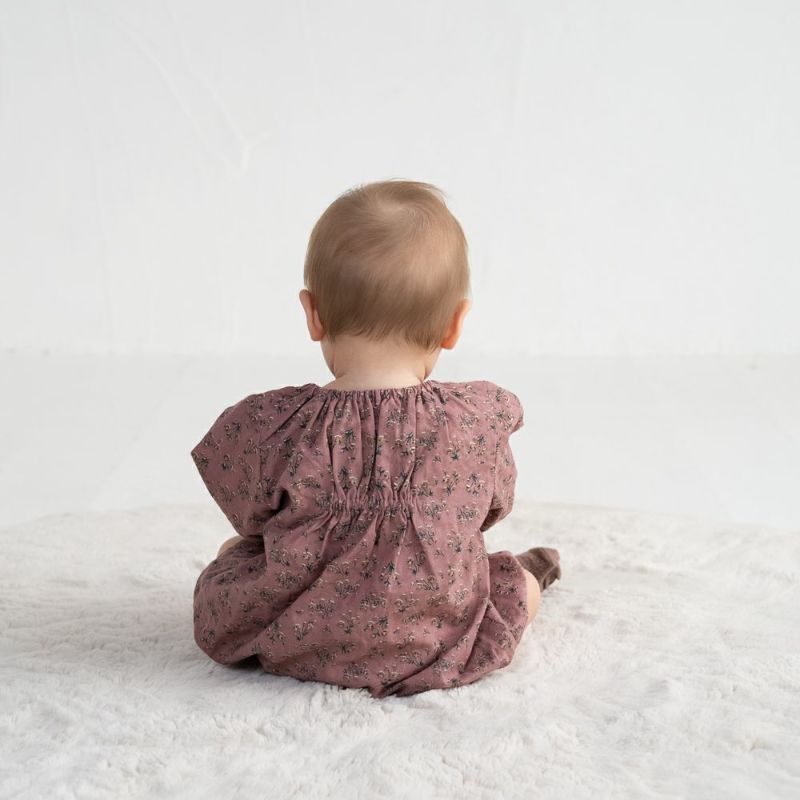 お顔周りに優しく華を添える花刺繍が上品なベビーロンパース。織り模様の入った花柄生地とナチュラルな風合いを感じる無地の3色展開です。刺繍は直接肌に触れない優しい仕様に◎衿ぐりはゴム、股下はスナップ仕様でお着替えもアシストしてくれます。