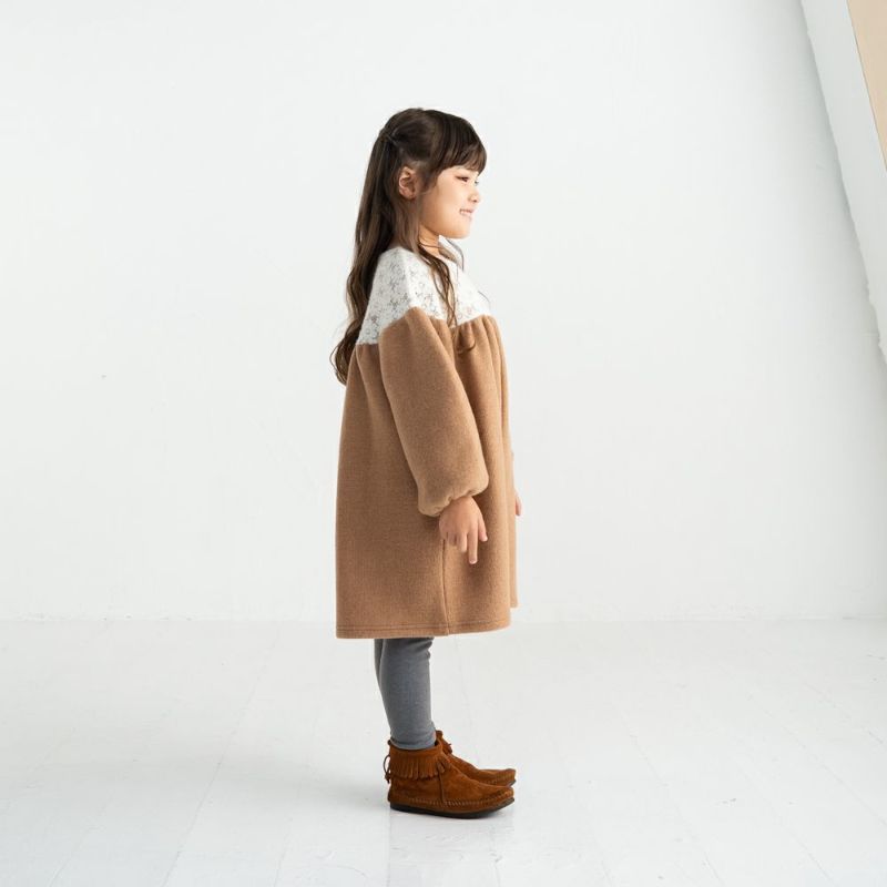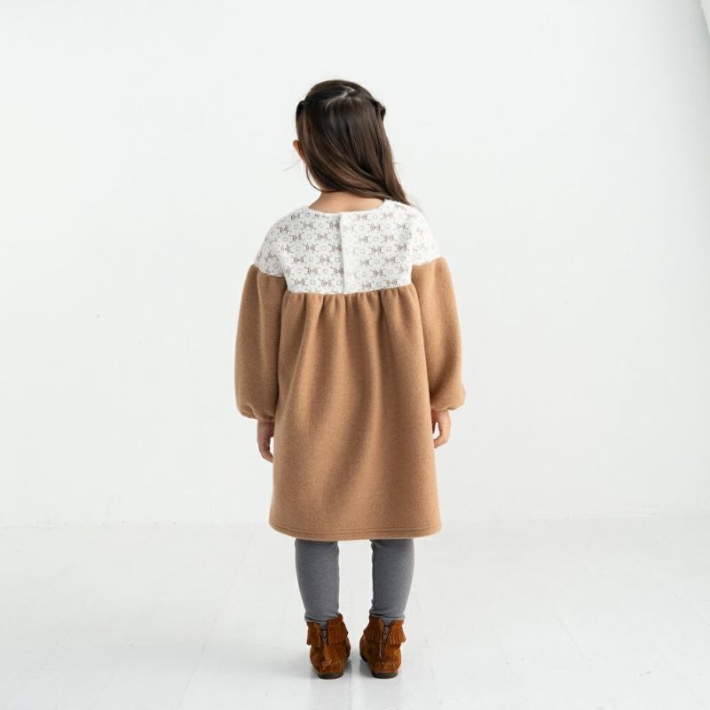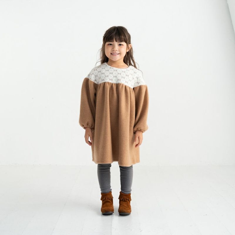 モヘアニット切替が人気のギャザードッキングワンピース。ぽわんとした袖とギャザースカートが女の子らしさを感じるデザイン♪起毛レース×モヘアニット素材がシーズンムードを盛り上げてくれます♪両脇にポケットを備えているので実用性も◎