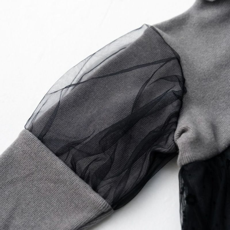 【2025秋冬セール】【2025AW】FRENCH Aming(フレンチアミング) チュールドッキングパフ袖Tシャツ