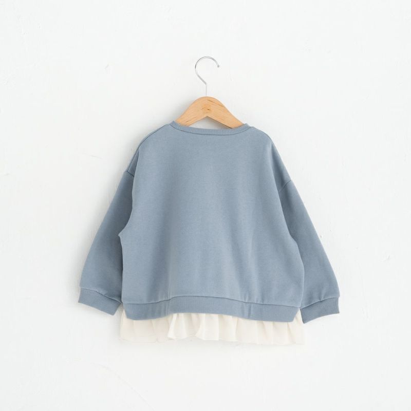1枚でふんわり甘めコーデが完成!裏面がふわっと柔らかい起毛素材だから寒い季節もぬくぬく快適。ゆったりとしたシルエットで、リラックス感たっぷりに仕上げました。胸元のロゴ刺繍と裾フリルでカジュアルな中にも可愛いニュアンスをプラス!