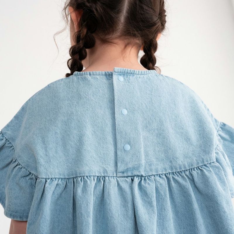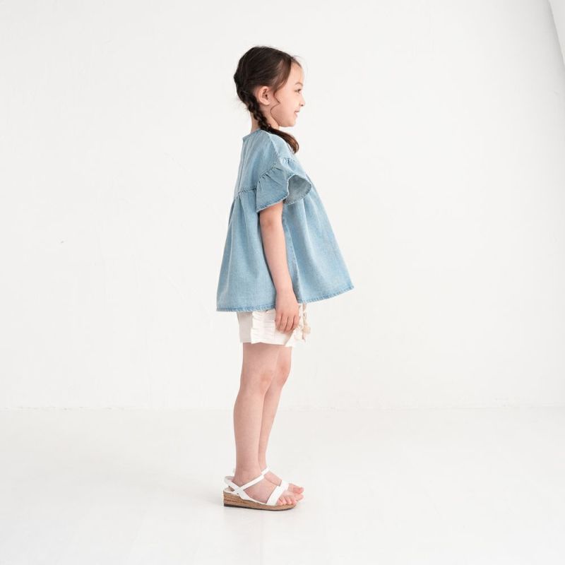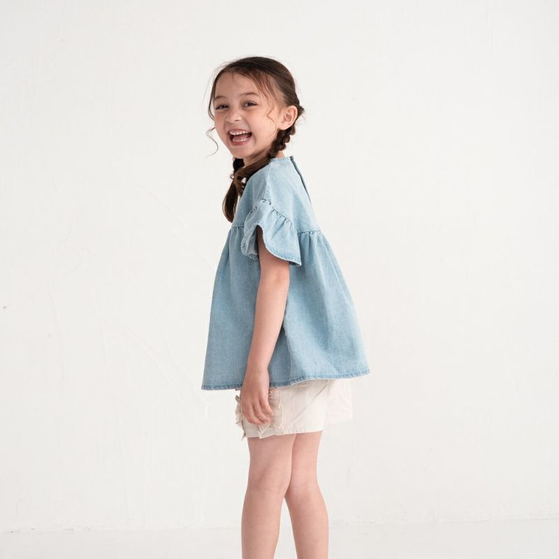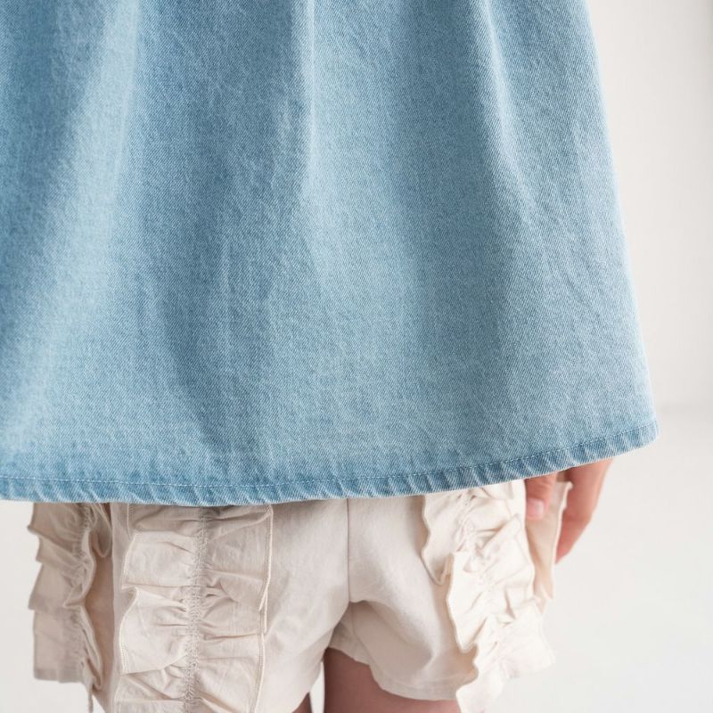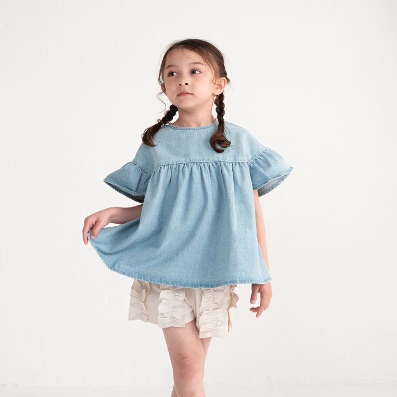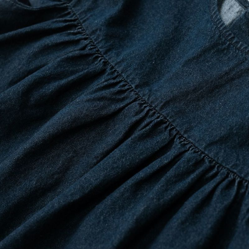 デニム素材で仕上げたフリルギャザーチュニック。肩まわりをすっきり見せるオフショルダーデザインで“抜け感”をプラスします。たっぷり寄せたギャザーと袖口フリルが1枚で華やかな印象に。どんなボトムとも相性が良いチュニック丈はデイリーコーデにぴったり♪