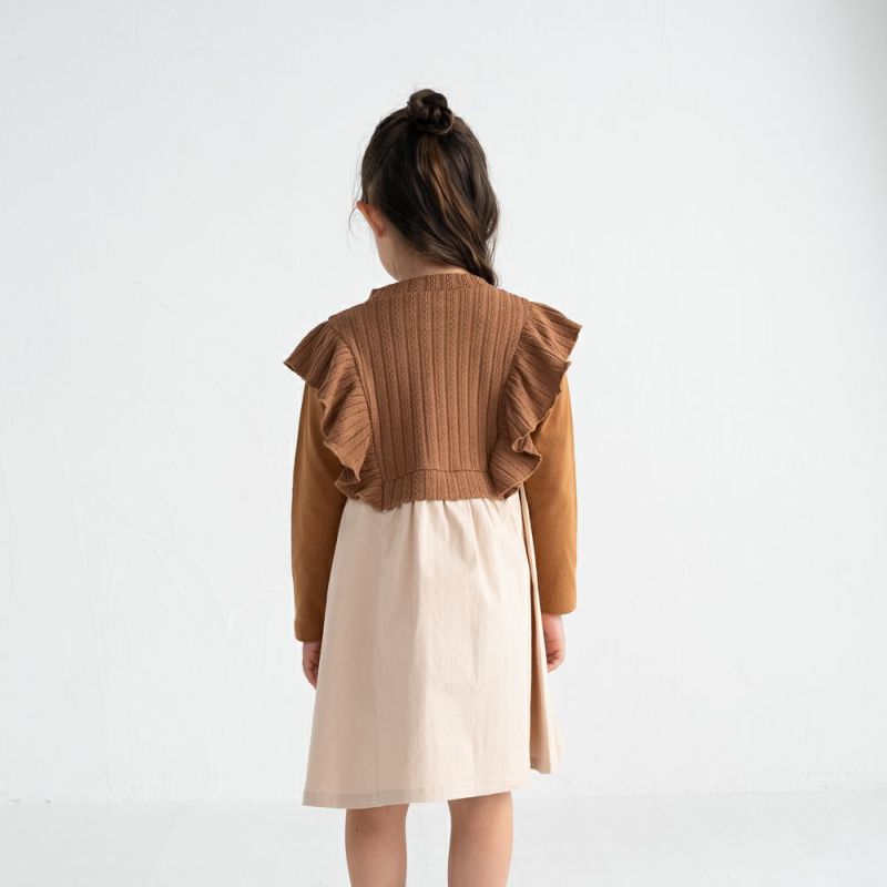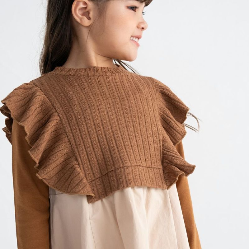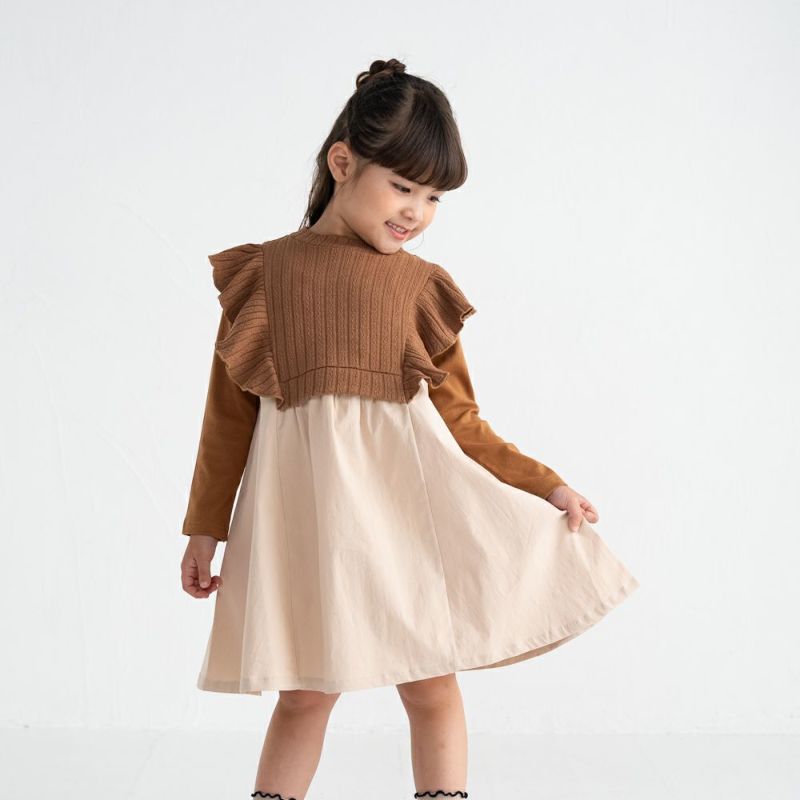 大人顔負けのドッキングワンピースはレディースでも人気のデザイン♪ベスト部分には編み柄を採用しもちっとした柔らかな素材感で可愛さ倍増!重ね着が苦手なお子様もドッキングなので着崩れもなく安心!リンクコーデアイテムも展開中です。