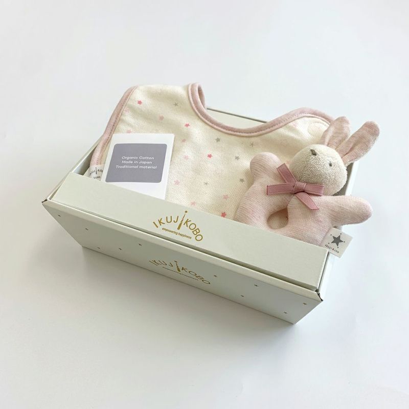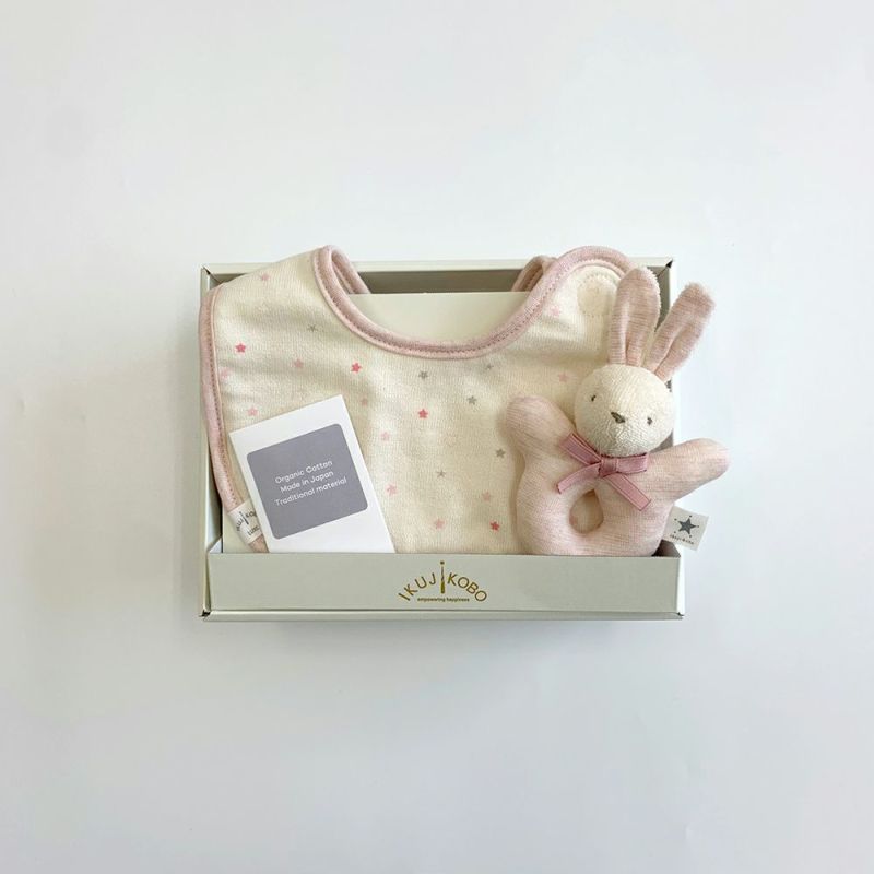 ikujikobo(育児工房) ギフトセット スタイ&ラトル 金平糖 ピンク