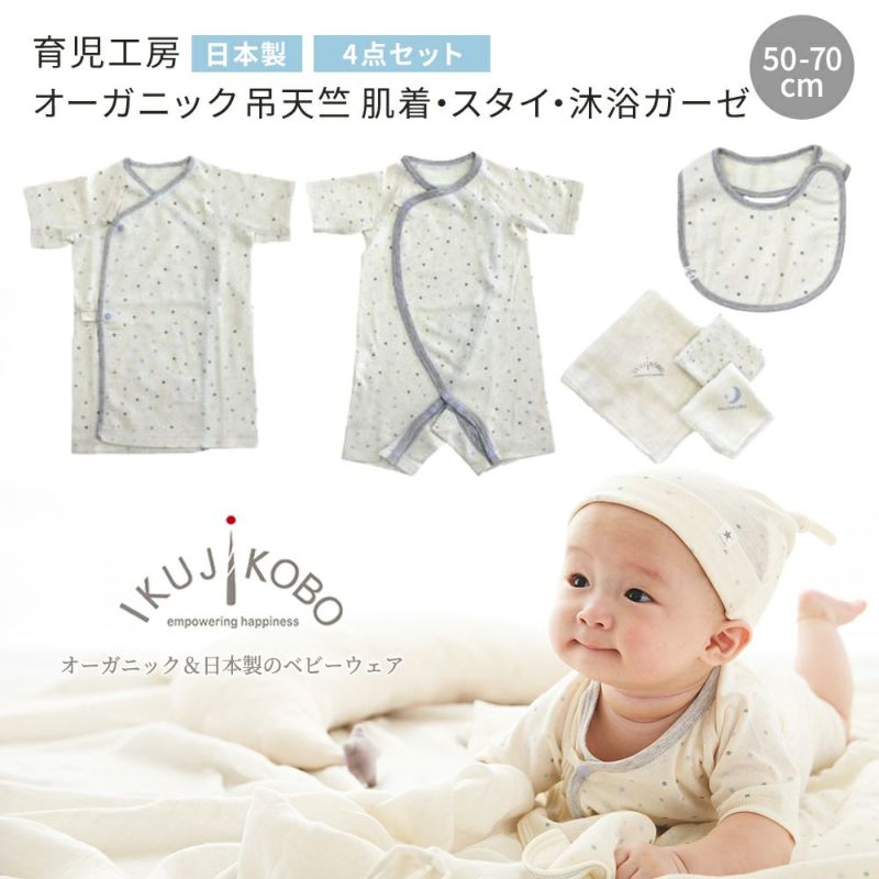 ikujikobo(育児工房)のこだわりをお試し♪ 【出産準備セット】ikujikobo(育児工房)オーガニック 出産準備4点セット(男の子)【小児科医の育児本プレゼント!】/Amingオリジナルセット