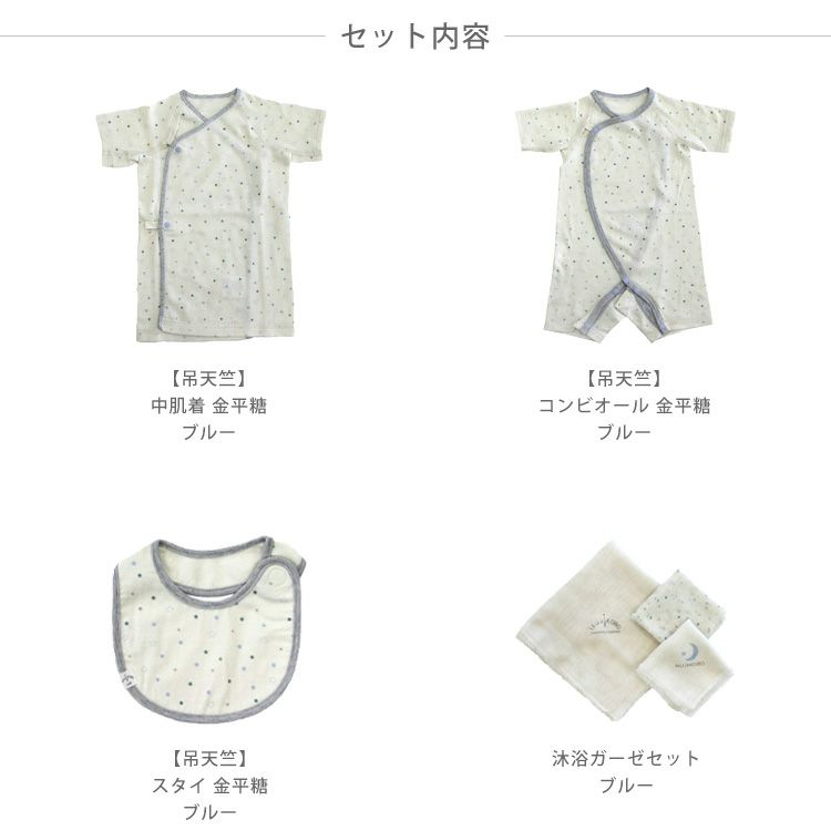 4548711053831オーガニック吊天竺 中肌着 金平糖 ブルー 50-70cm
