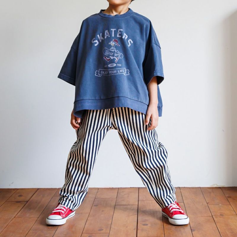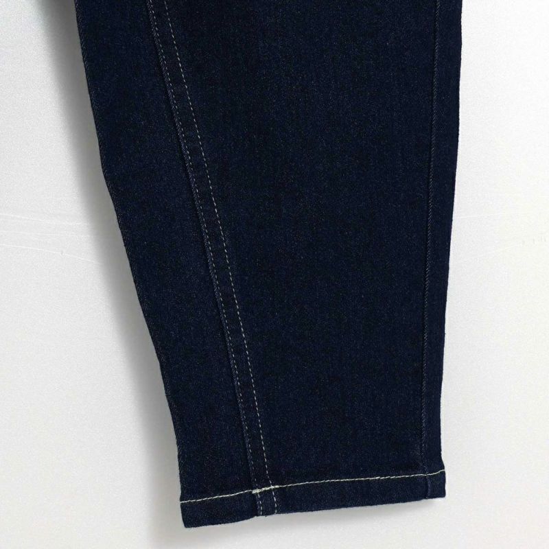 ネイビーは伸縮性のあるニットデニム、ヒッコリーは伸縮性のないストライプデニム。