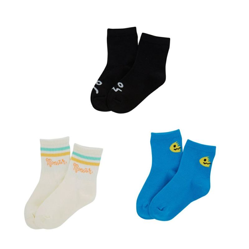モンスターをテーマに3種類のユニークなデザインをSETにした、3Pアンクル丈ソックス。