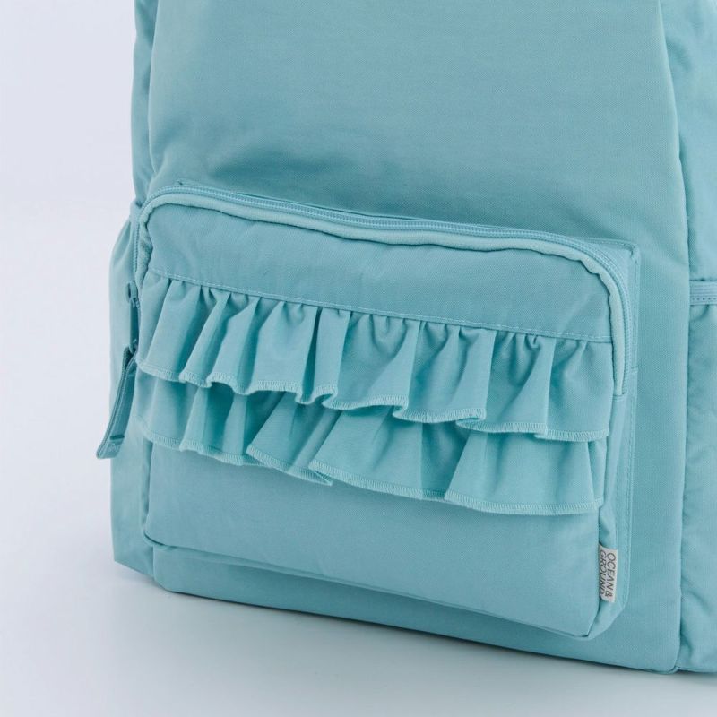 正面ポケットと肩紐にあしらった、さりげないフリル使いが可愛い!