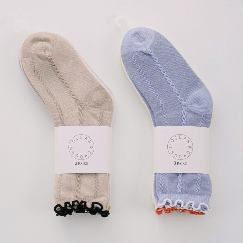 OCEAN&GROUND(オーシャンアンドグラウンド)3PストライプJQメロウクルーソックスSET