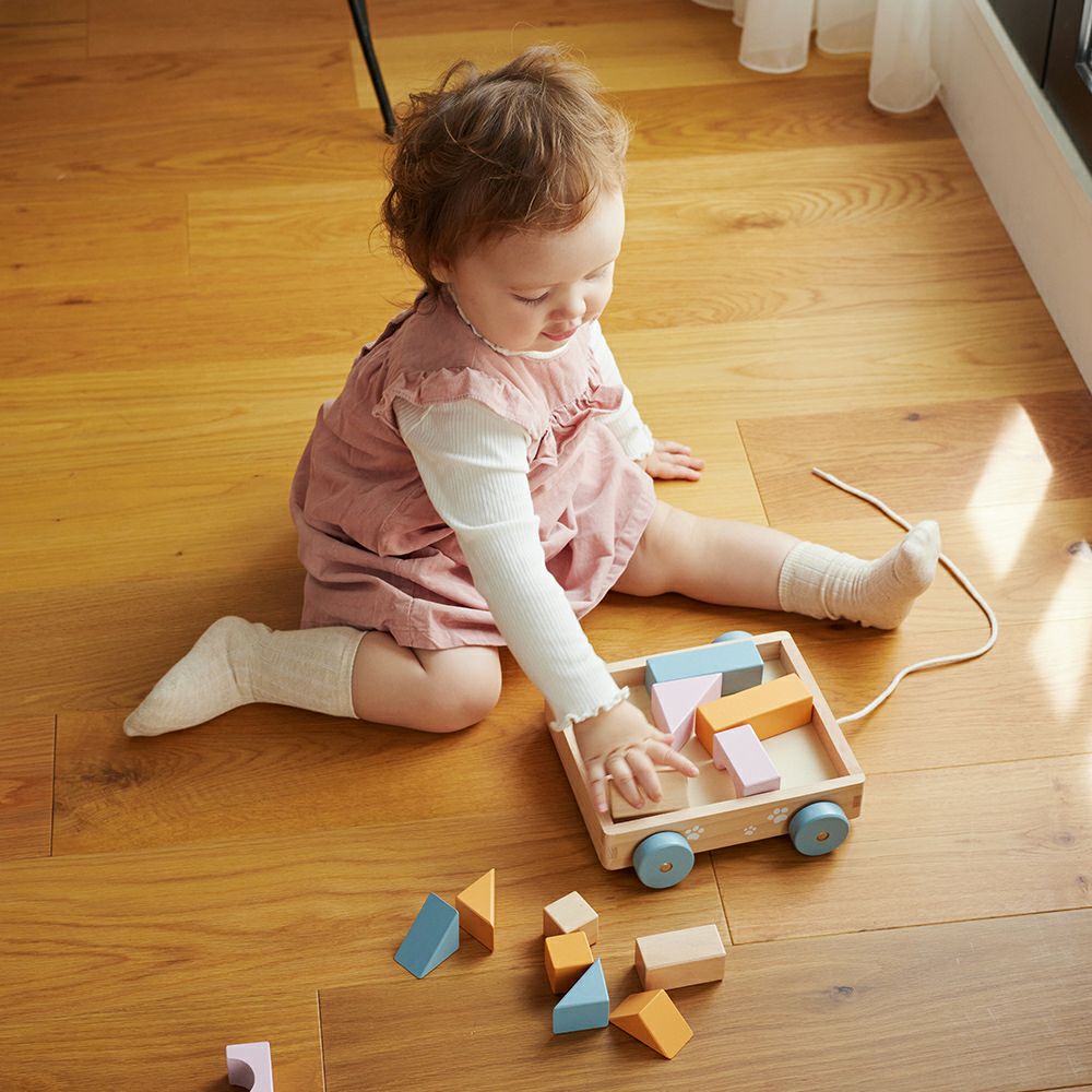 北欧テイストをベースにしたペールトーンカラーのかわいい木製トイをラインナップ。