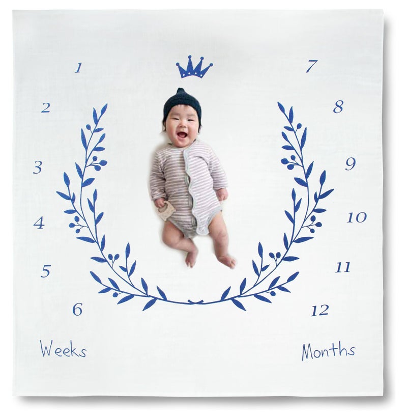 成長ごとにディスプレイを変え、楽しみながら1ヶ月から12ヶ月までのかわいい赤ちゃんの成長の姿を撮影できます。 赤ちゃんの肌にやさしいオーガニックコットン糸100%使用。 赤ちゃんの汗やよだれをしっかり吸収します。お洗濯後の乾きが早いのでいつでも清潔にお使いいただけます。 3重織りガーゼ素材は多層間に空気を含むので、蒸れずに快適な温度と湿度を保ちます。おくるみやお昼寝時の肌掛けに、またベビーカーでのお出かけの際のひざ掛けにと活躍してくれます。ご自宅用にはもちろん、プレゼントにもピッタリです♪
