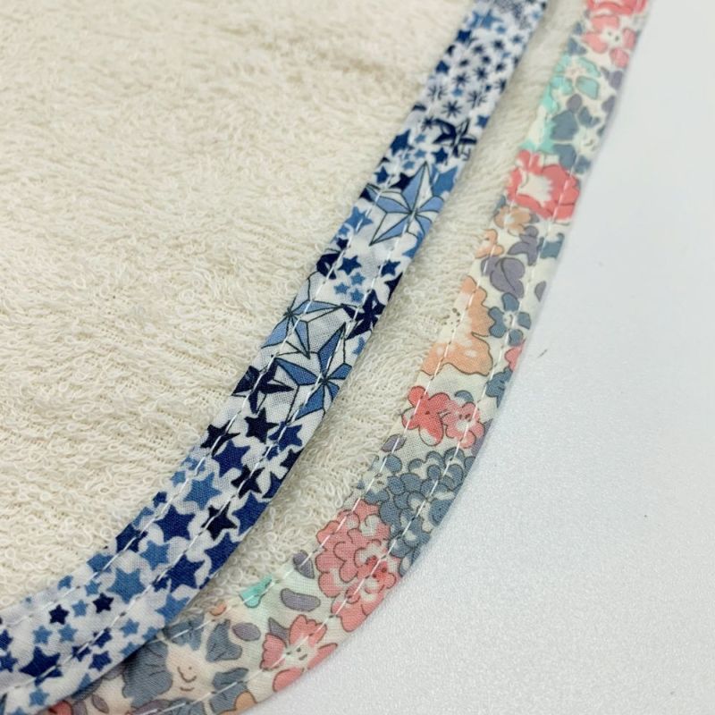 オーガニックコットンパイルをリバティプリント生地で縁どりました!