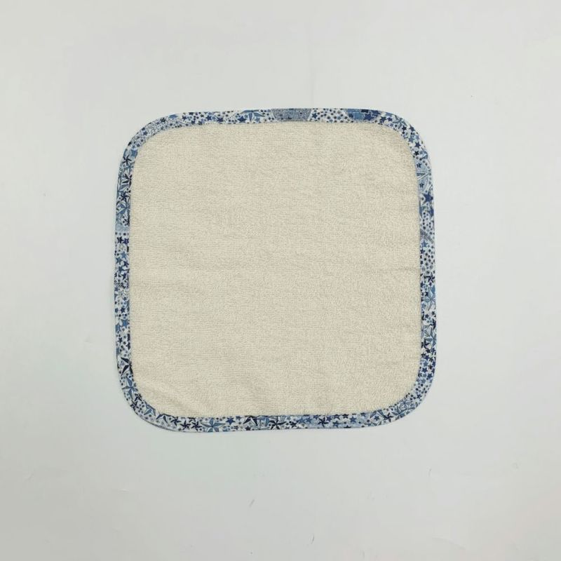 オーガニックコットンパイルをリバティプリント生地で縁どりました!