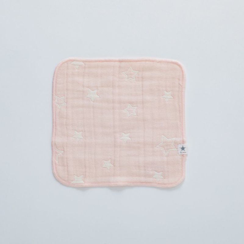 ikujikobo(育児工房)五重織ガーゼ ハンカチ 星柄 ピンク