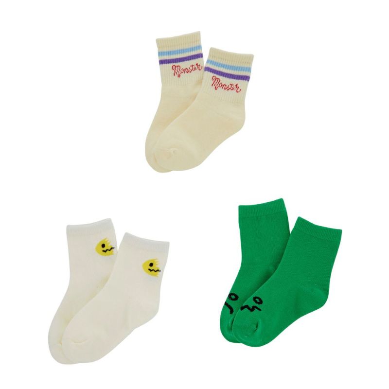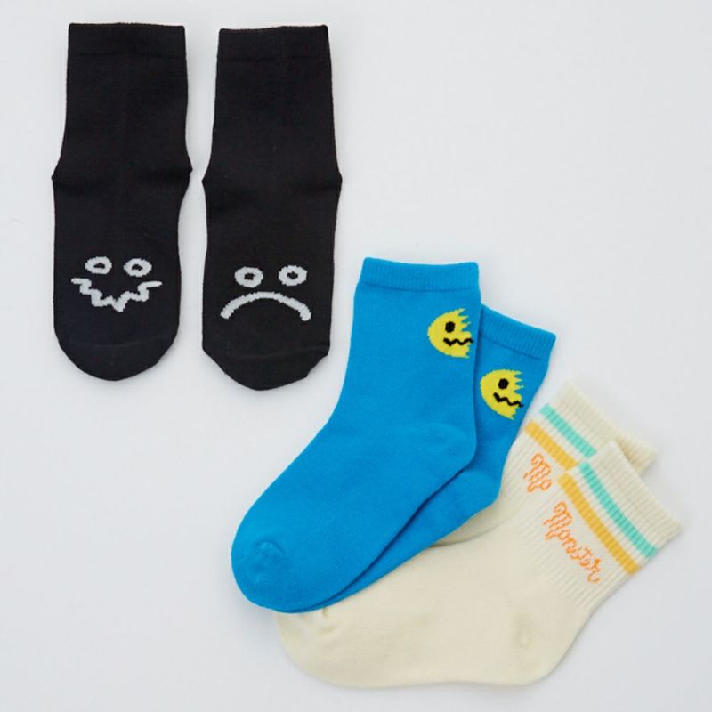 モンスターをテーマに3種類のユニークなデザインをSETにした、3Pアンクル丈ソックス。