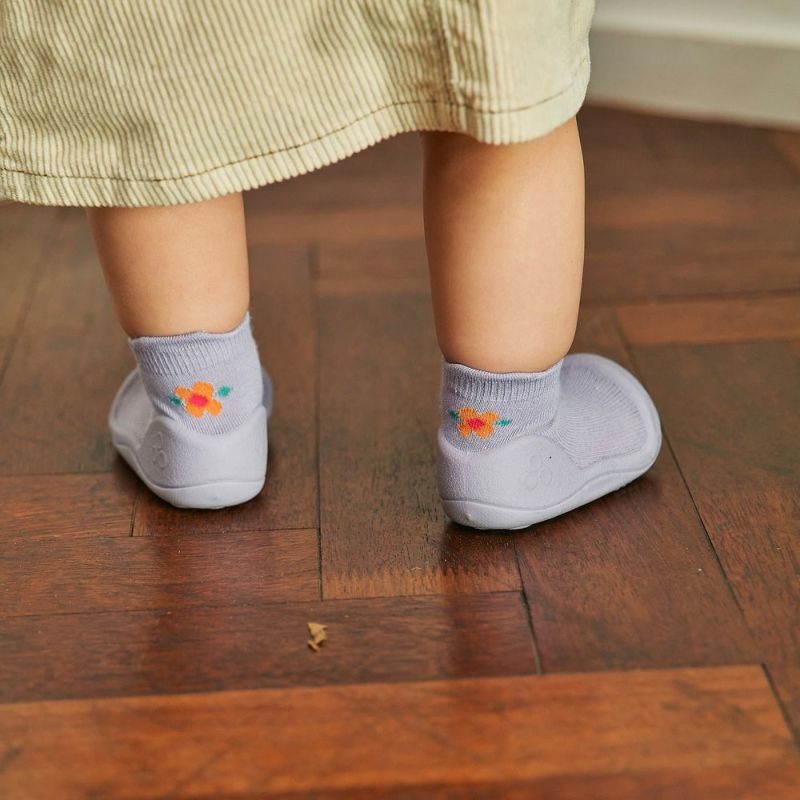 つかまり立ちや伝い歩きをする時期です。フローリングでも滑りにくいのでトレーニングシューズとしてもおすすめ。軽くて小さいので持ち運びにも便利です。