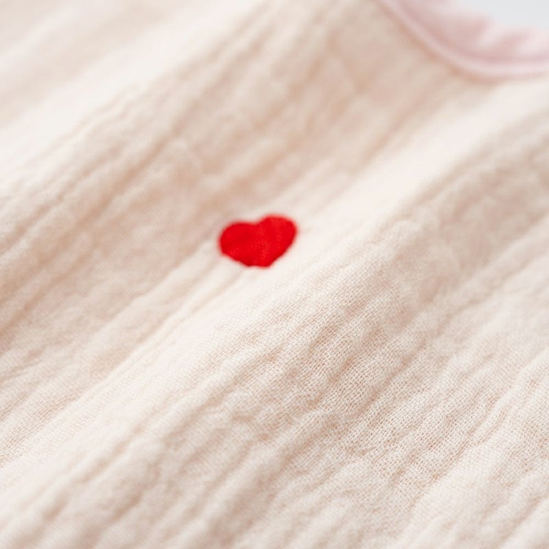 シワ感のある生地に、小ぶりな刺繍がナチュラルで可愛いガーゼスタイです♪