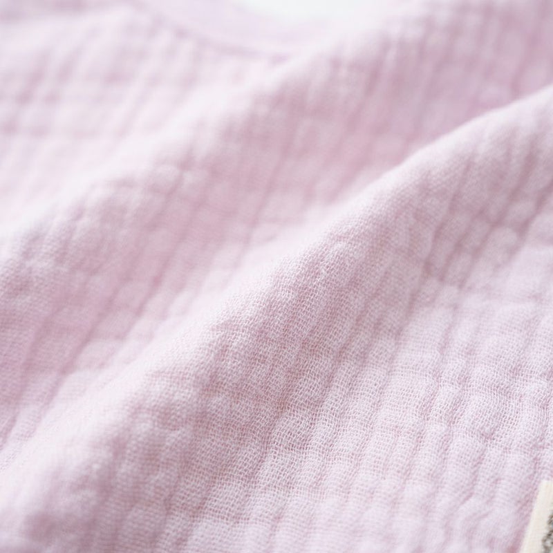 ガーゼ素材は吸水性と通気性に優れていて汗や水分をしっかり吸収し、乾くのもあっという間。また、軽くて保湿性もあるので、季節を問わず使えて、ベビーにぴったりの素材です。
