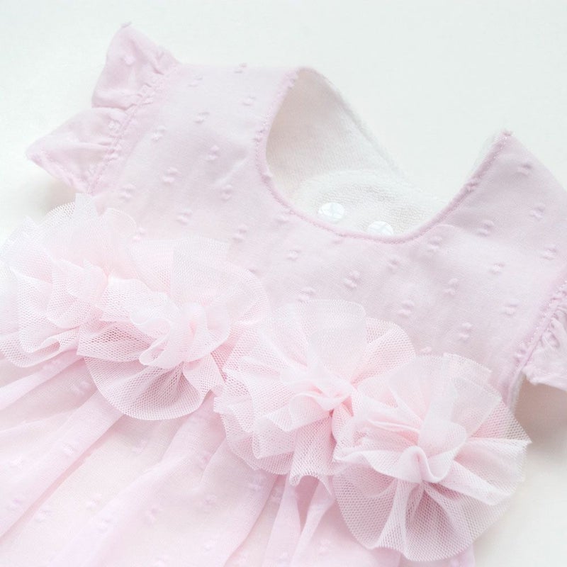 Leapepe(レアペペ)のエプロンとブルマのセットです。ふんわりと広がるチュールがドレスみたいなおめかしエプロン。大きな丸襟と高級感あるリボンもさらに女の子らしく、かわいくみせてくれるデザインです。誕生日や結婚式などのフォーマルな席や記念撮影などにぴったり。かわいくおめかしできて、パーティの主役になれちゃうセットです。
