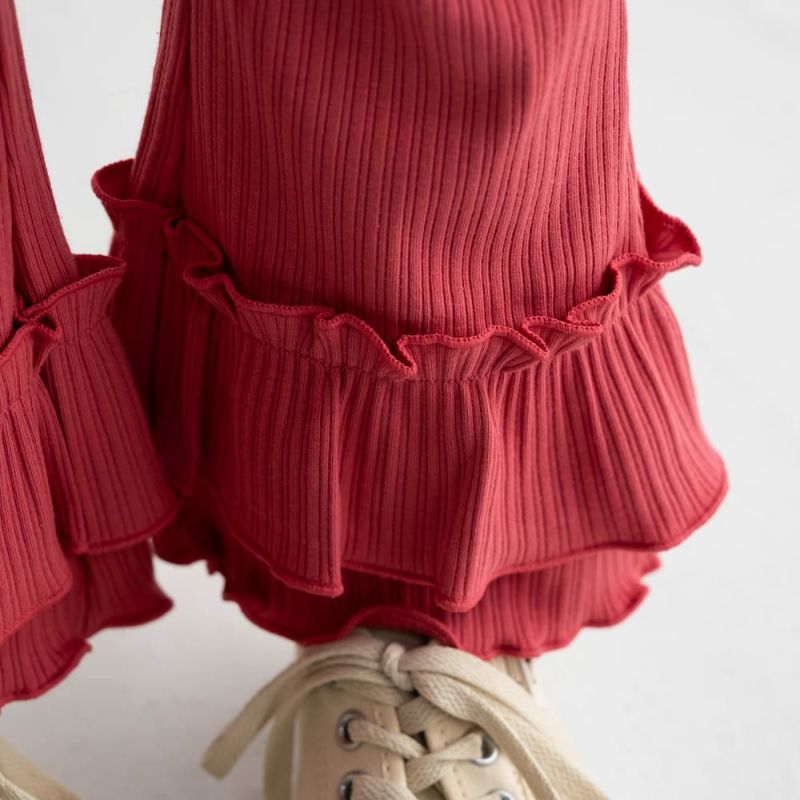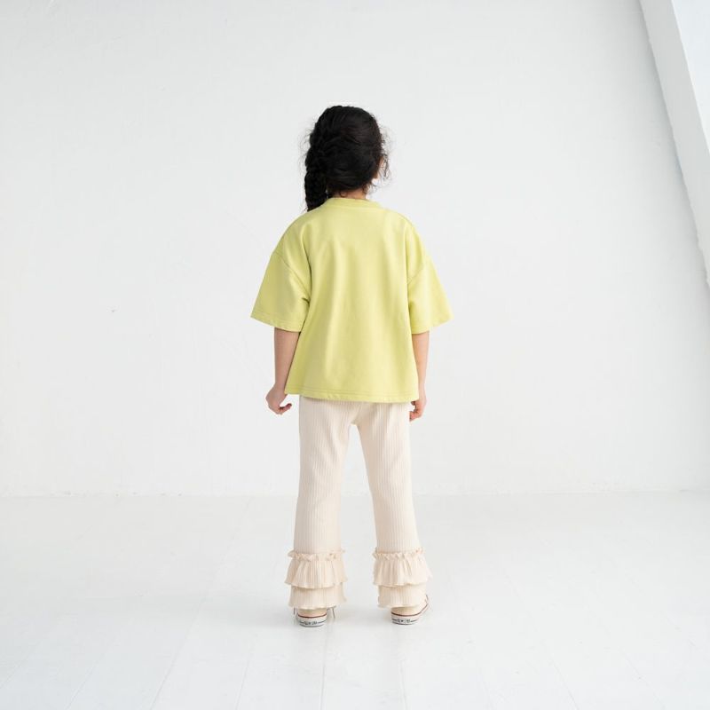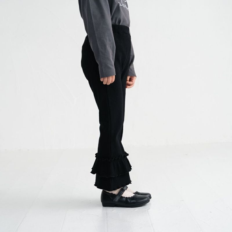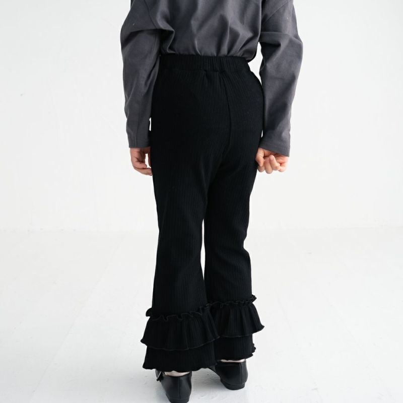 裾のフリルがかわいい♡フレアパンツ。伸縮性のある生地で動きやすく、デイリーにもお出かけにもおすすめです♪