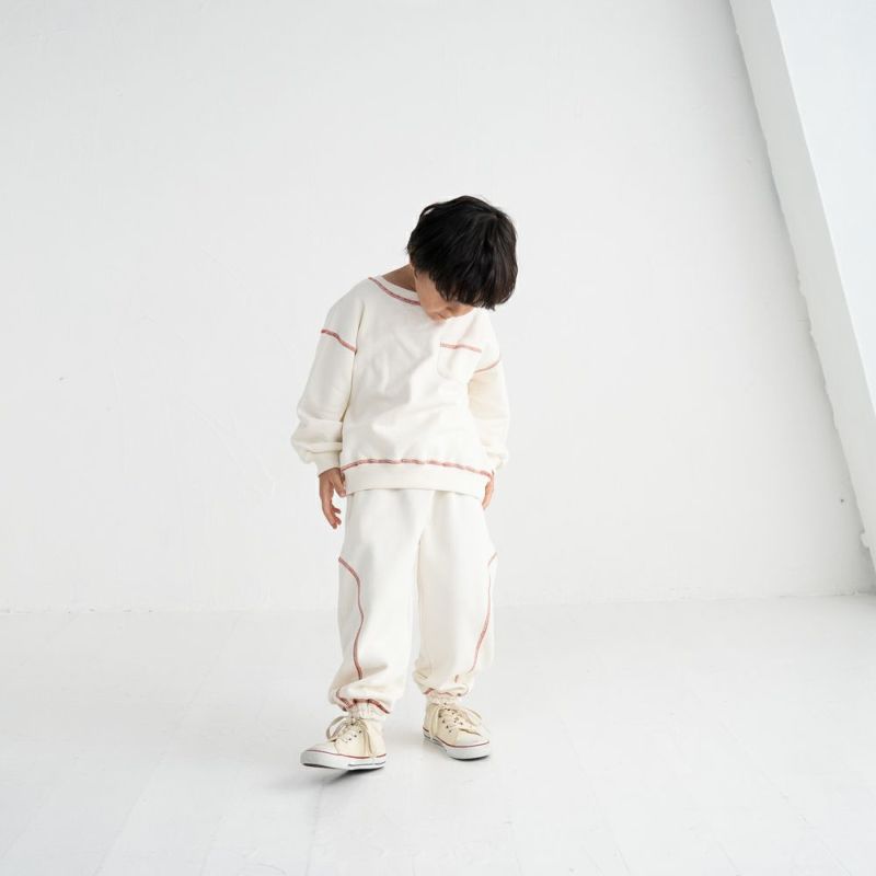 配色ステッチがきいたシンプルなスウェットパンツ。スタイリングは組みやすくしつつ、さりげない配色がおしゃれ見えするデザイン!