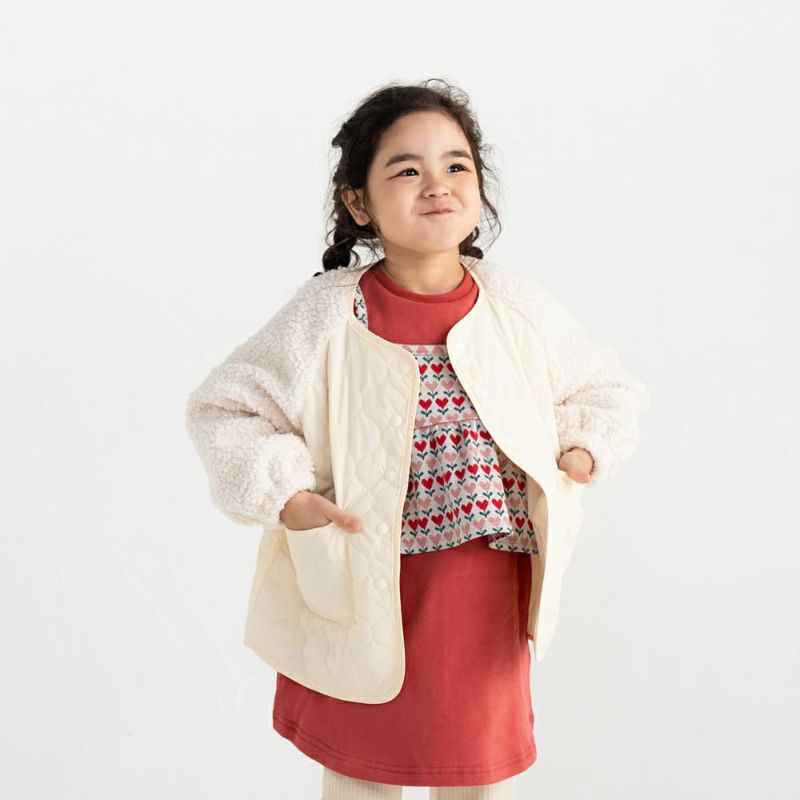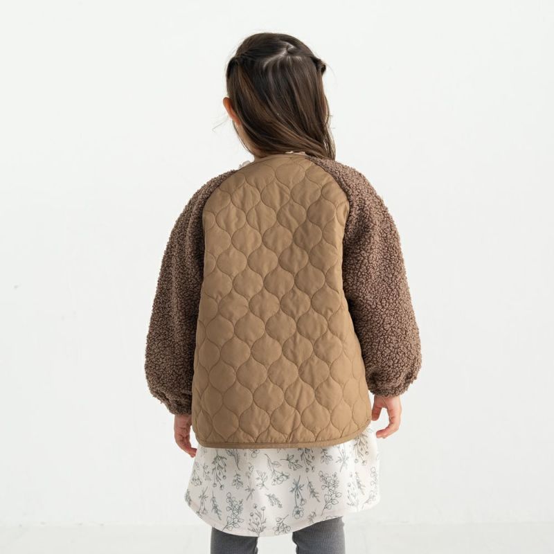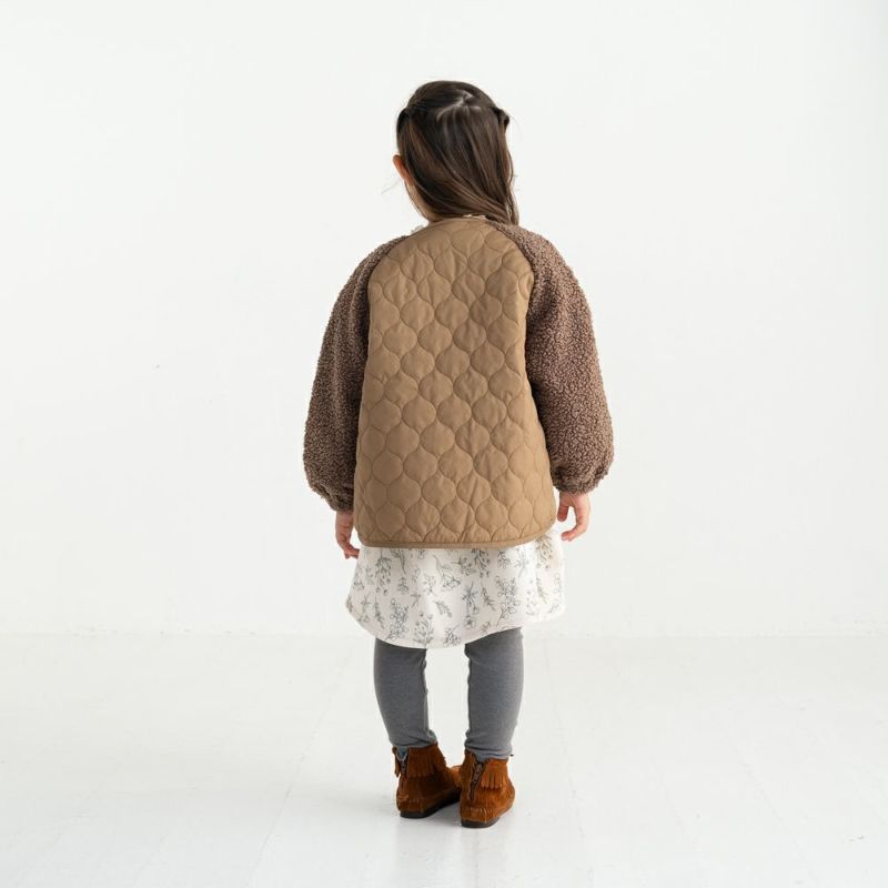 異素材ミックスが魅力のキルトアウターです。中わた入りのキルト生地は軽くてあたたかく、袖にはもこもこの粒ボア素材を。肌寒い季節にぴったりの着心地です。やや長めのチュニック丈でお尻まですっぽり隠れるから、防寒対策もばっちり。