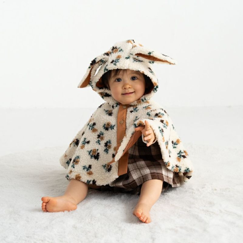 さっとかぶるだけでくまさん、うさぎさんになれる気分もほっこりなリトルアニマルケープ♪ボア素材であたたかさもあり寒い季節のお出かけにも活躍。コートはまだ必要ないかな?という赤ちゃんにも最適な1枚です。