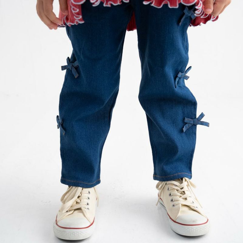 可愛いと着やすいのちょうどいいバランスが1本で叶うよくばりリボンデニム♪ラフな穿き心地はそのままにサイドにあしらったリボンでほんのりフェミニンに。ゆるやかなテーパードシルエットが体型を選ばず、デイリーに活躍します。