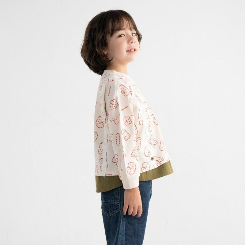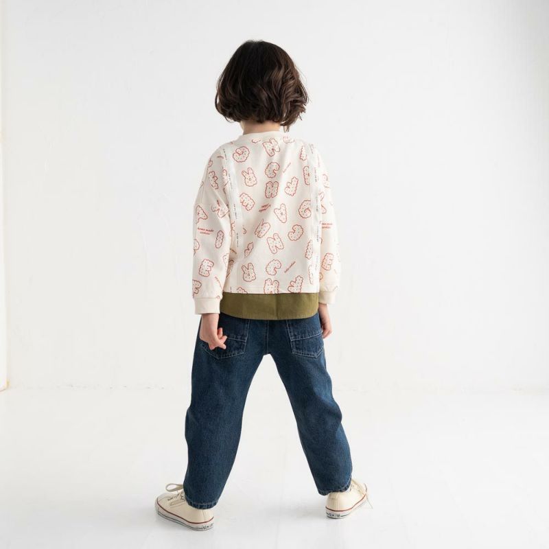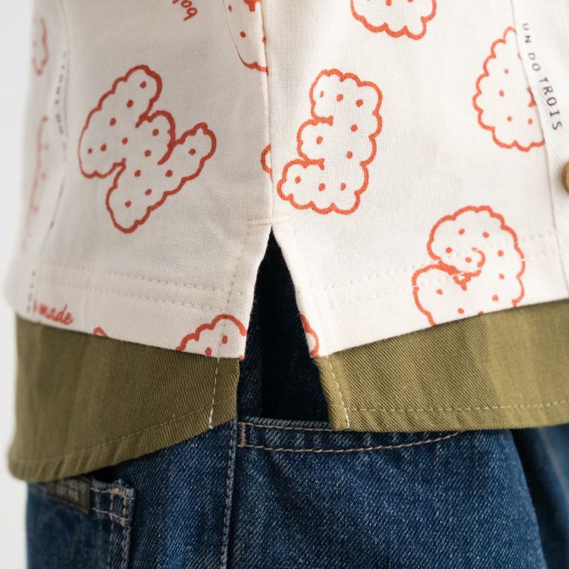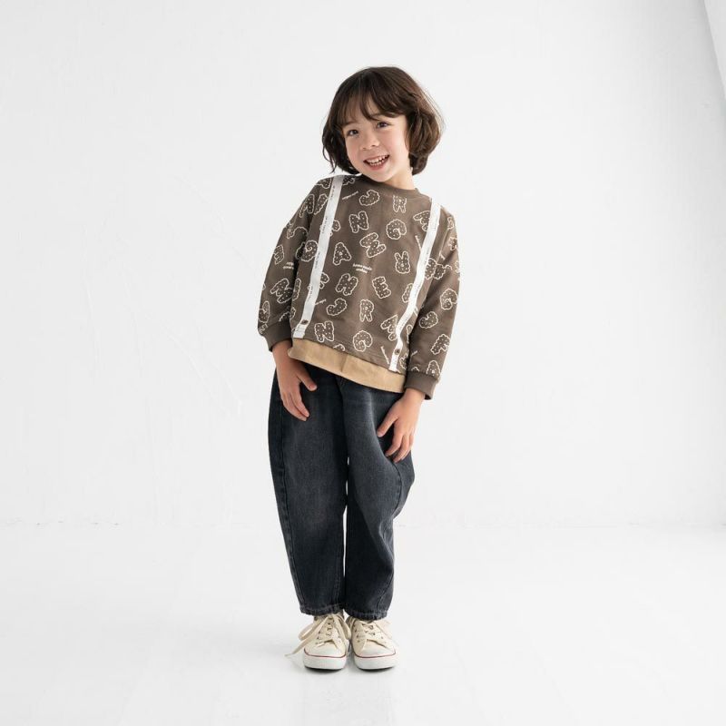 サス付き重ね着トップスは1枚でお洒落にきまる定番必須アイテム!オリジナルのビスケットアルファベット柄が目を惹くサス付きシリーズは兄弟コーデも可愛い!サスペンダーにはさりげないロゴをオン!おしゃれなニュアンスをプラスします。