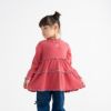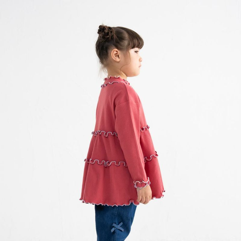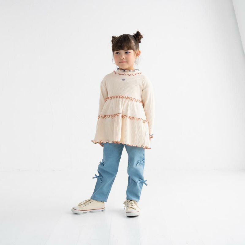 胸元にちょこんとあいたハートのカッティングとふわっと広がるティアードシルエットがとびきりキュートなチュニックです。伸びのよいリブ素材で、着脱しやすく動きやすい!配色のカラーメローをほどこして、表情豊かに仕上げました。