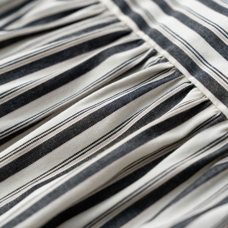 後ろ側が長く、ギャザーの入ったシルエットがおしゃれなシャツ。