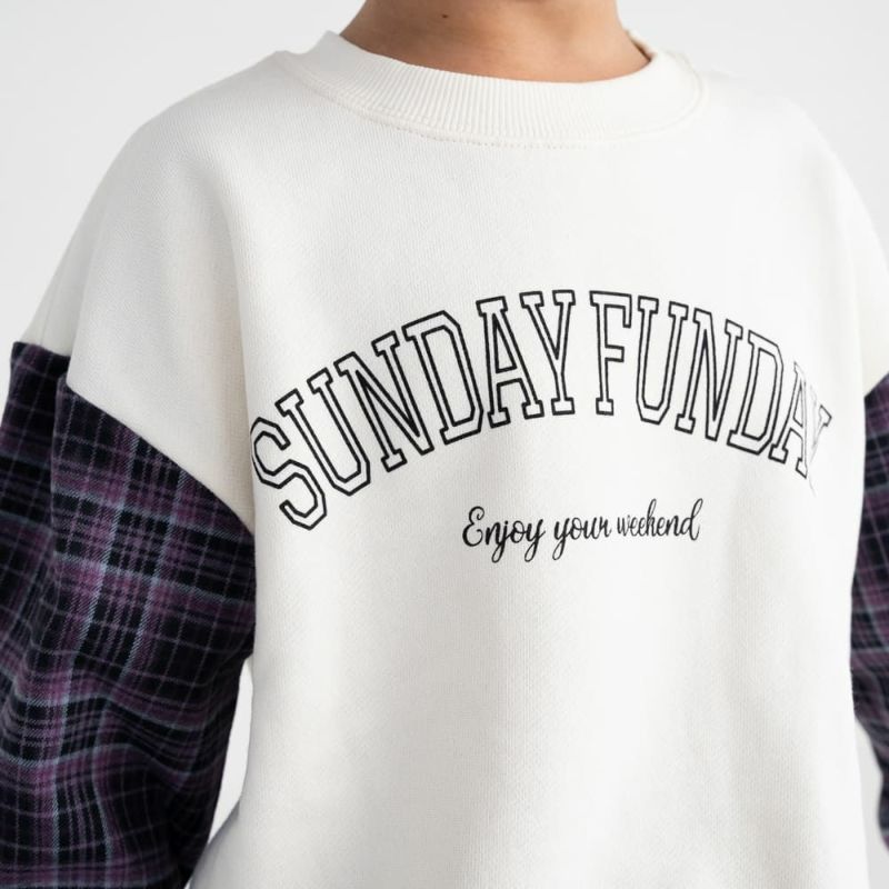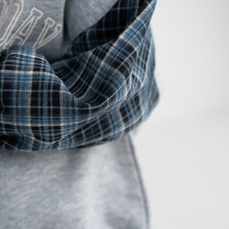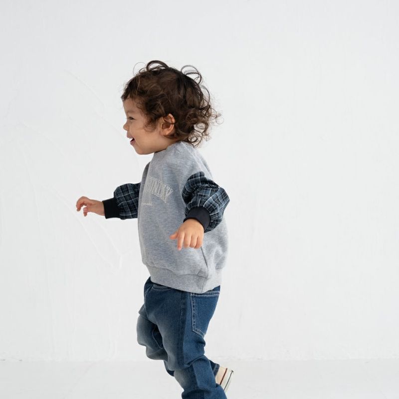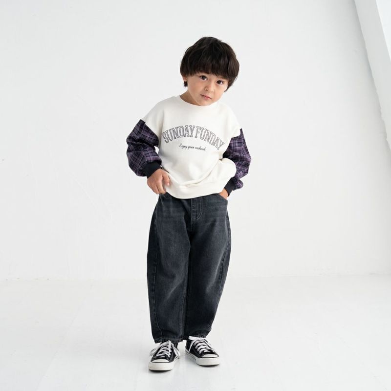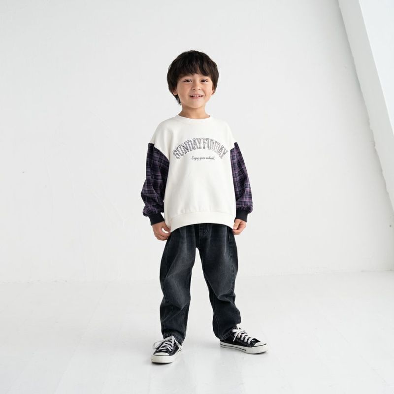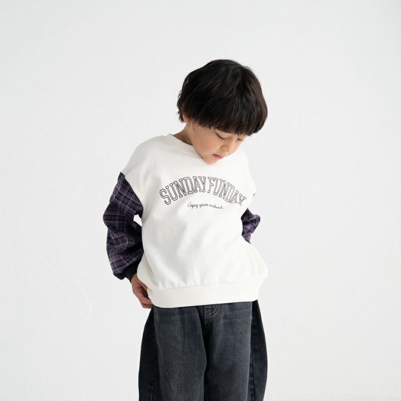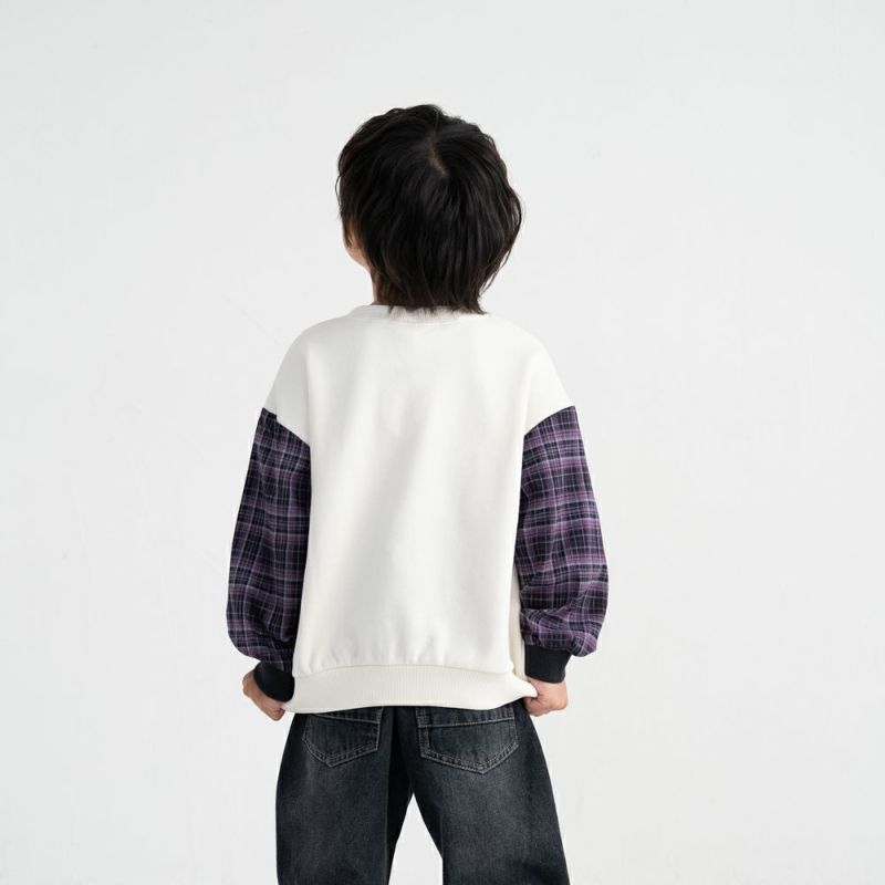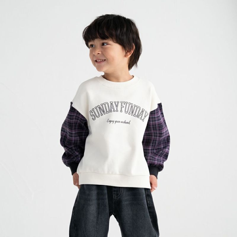 秋らしいチェック袖がおしゃれなトレーナー。重ね着しているかのようにインパクトのあるデザインなので、これ1枚でコーディネートが映えるアイテムです。
