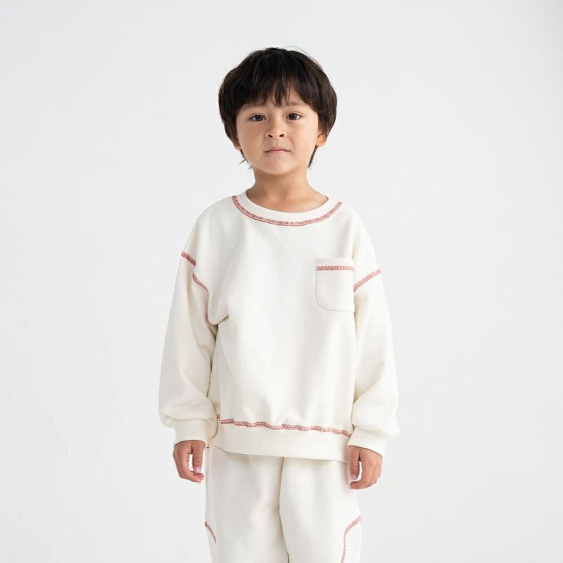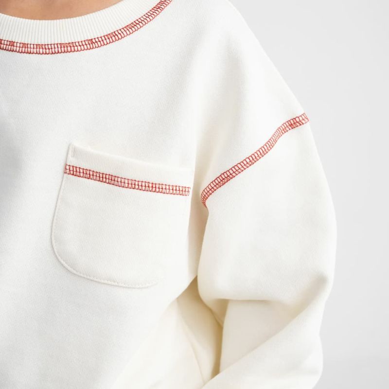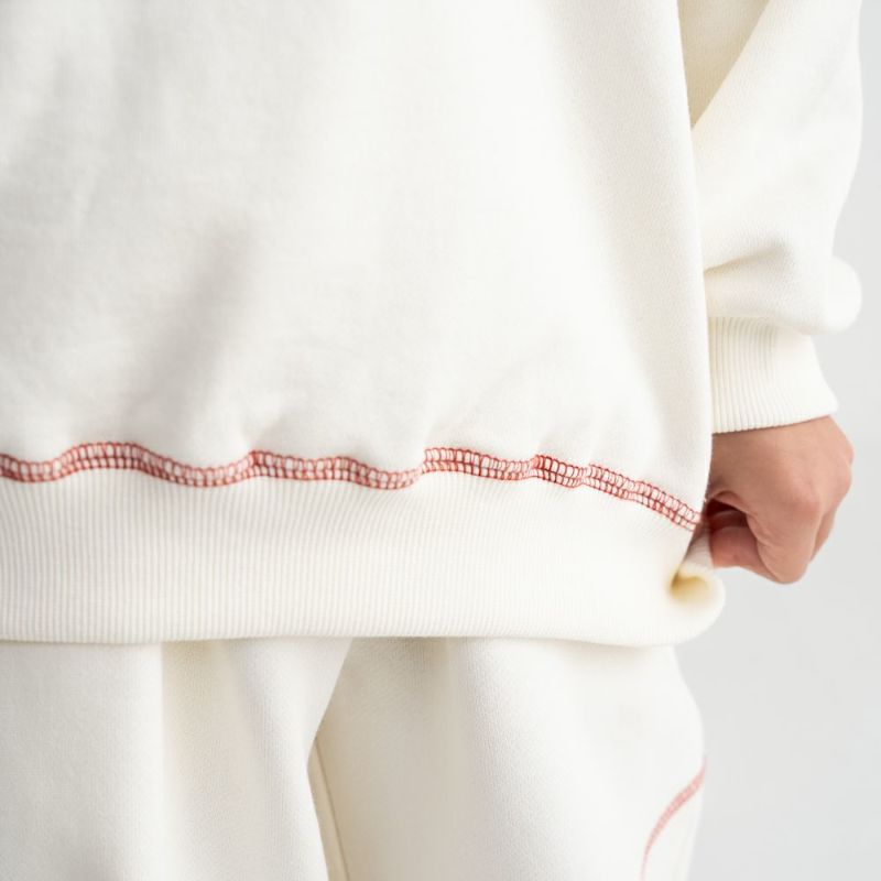 配色ステッチがきいたシンプルなトレーナー。スタイリングは組みやすくしつつ、さりげない配色がおしゃれ見えするデザイン!