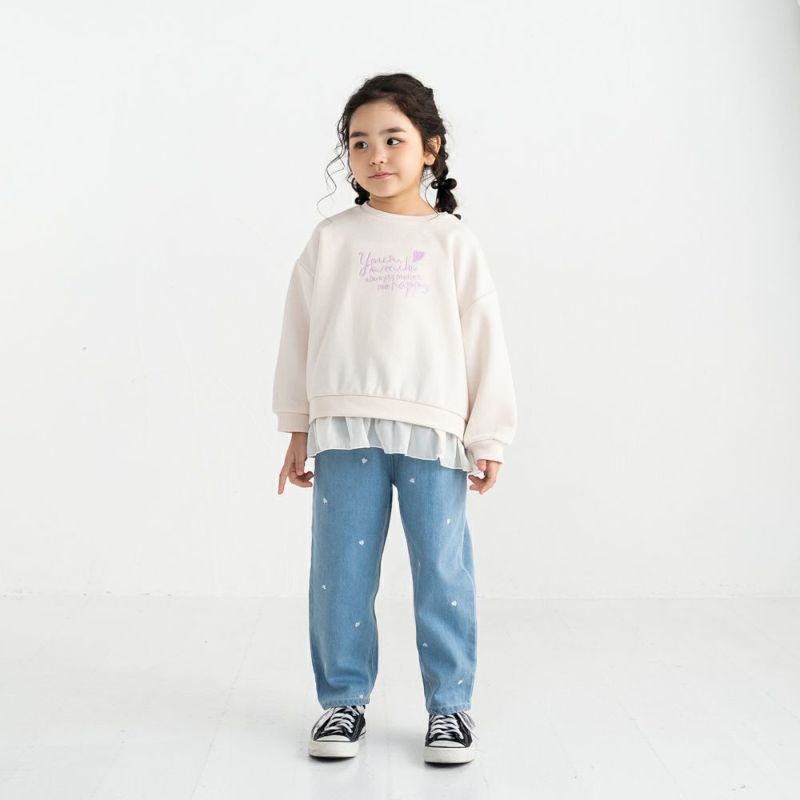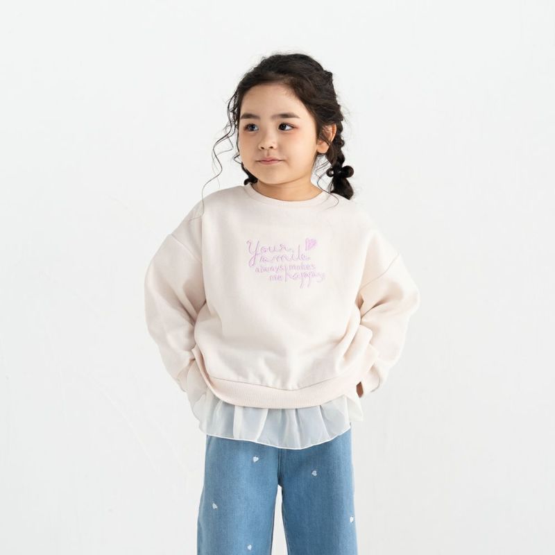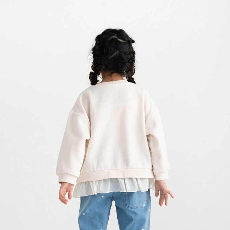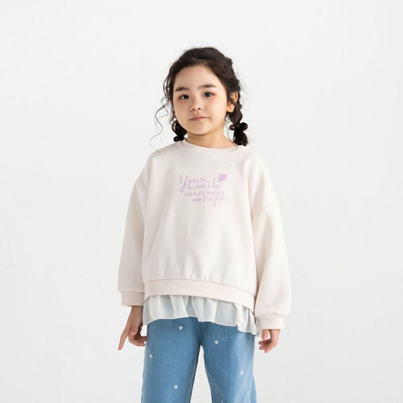 1枚でふんわり甘めコーデが完成!裏面がふわっと柔らかい起毛素材だから寒い季節もぬくぬく快適。ゆったりとしたシルエットで、リラックス感たっぷりに仕上げました。胸元のロゴ刺繍と裾フリルでカジュアルな中にも可愛いニュアンスをプラス!