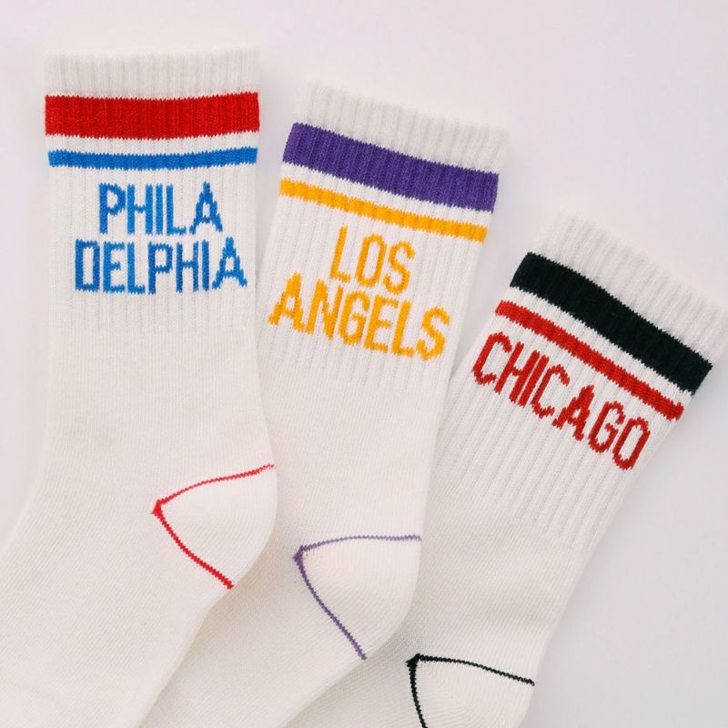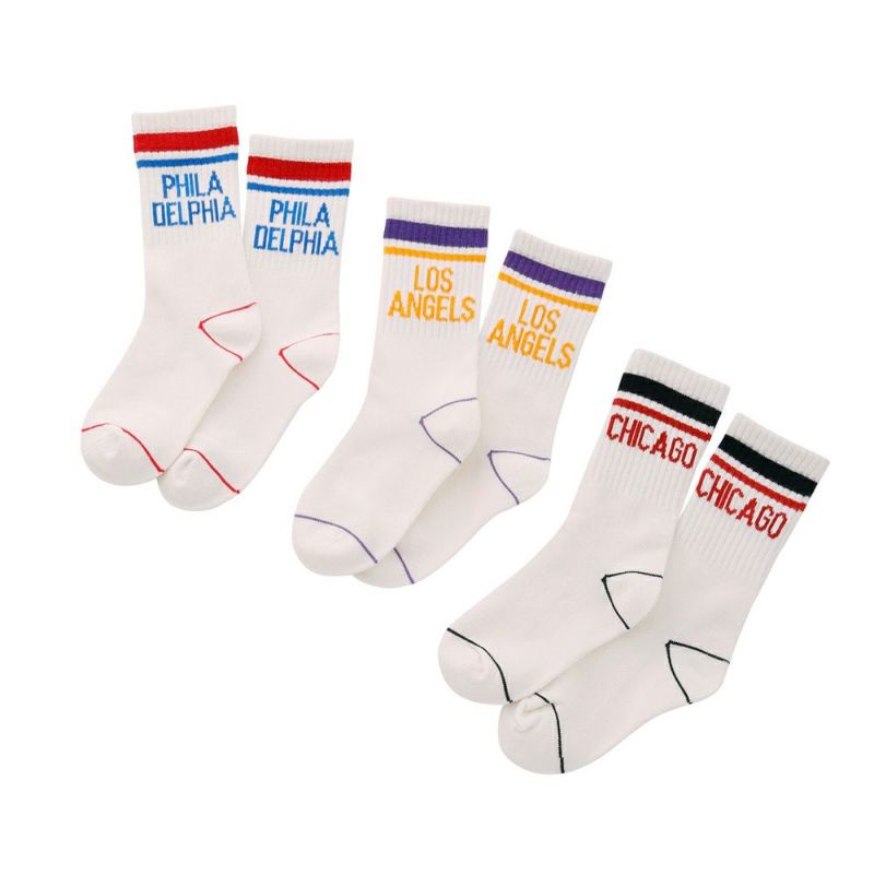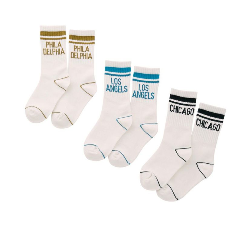 ライン×ロゴデザインの色使いが可愛い3Pセットのクルーソックス。