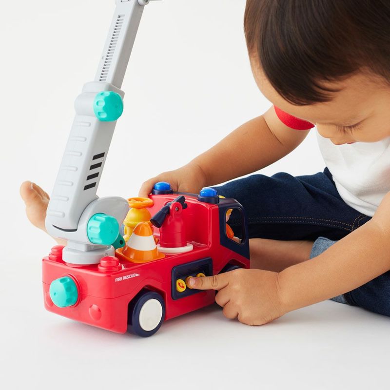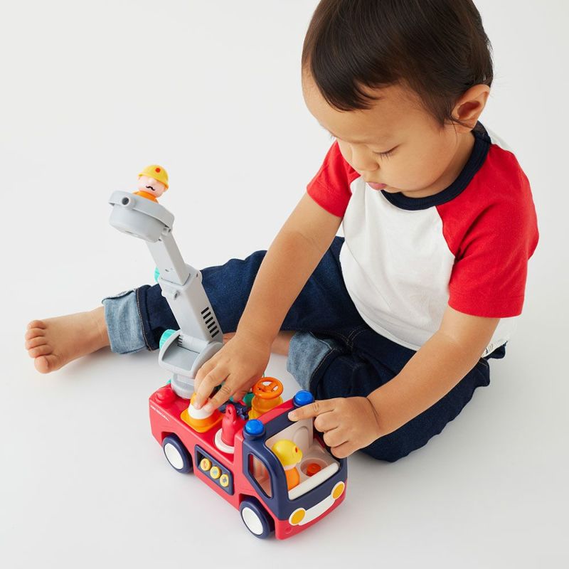 サイレン音や音楽が流れるサウンド機能、自分で走る走行機能がついているかっこいいしょうぼうしゃ。