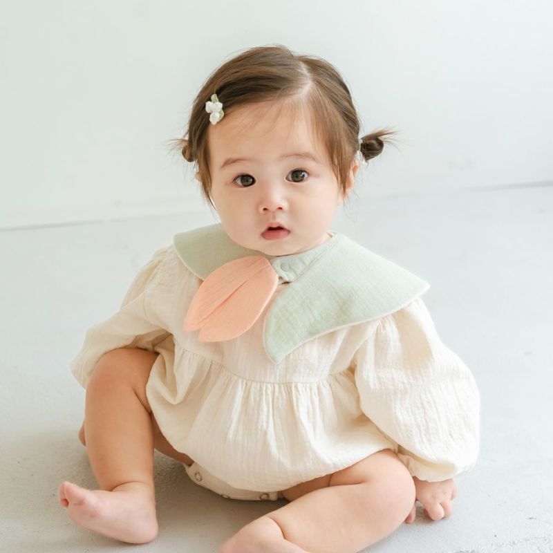 スタイは見た目の可愛さはもちろん、赤ちゃんの肌にやさしい綿100%のガーゼ素材を使用しており、裏面には吸水性に富んだパイル生地を採用。